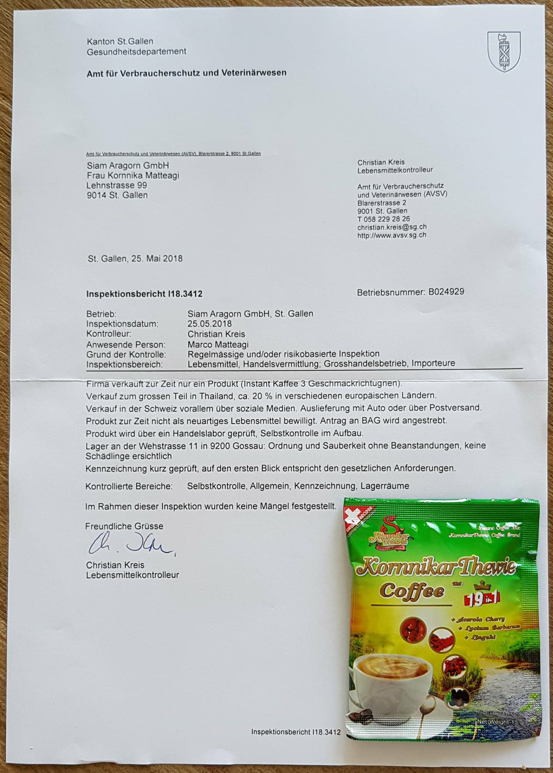 ใบตรวจสุ่มตรวจสินค้าที่คลังประเทศสวิตเซอร์แลนด์ เอกสารออกโดยภาครัฐ